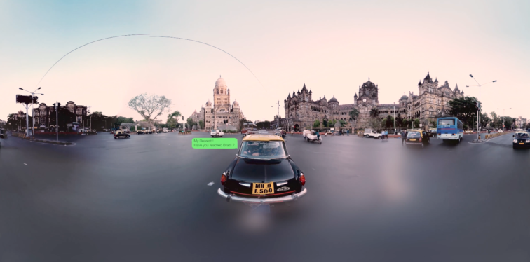 The following is an attempt to explain some of the concepts and techniques we used to translate our vision into the language of this hitherto unknown landscape of VR films. In Jetlag, we set the tone by immersing users into downtown Mumbai flying along behind the taxi of the protagonist, participating in her WhatsApp messages.